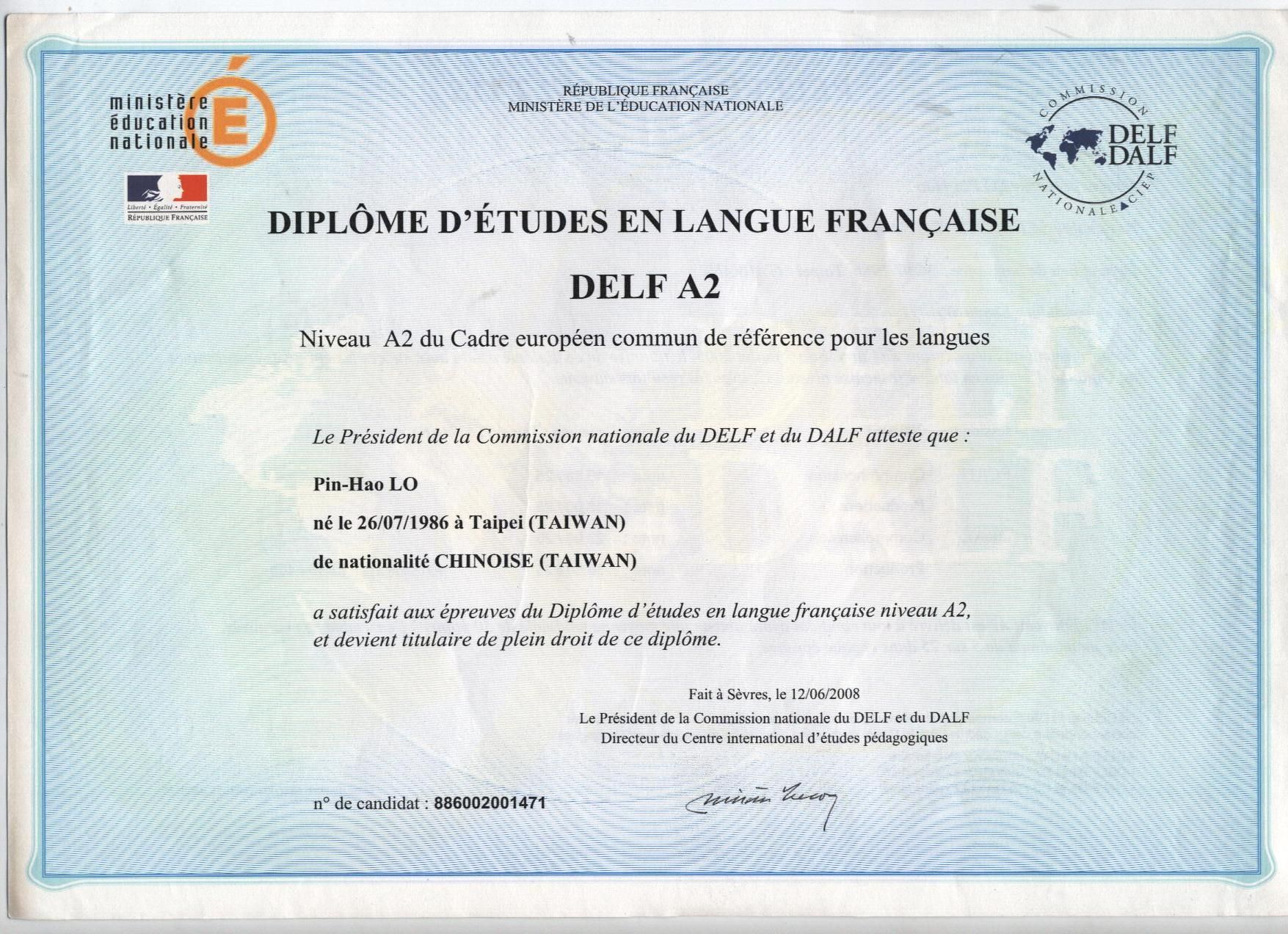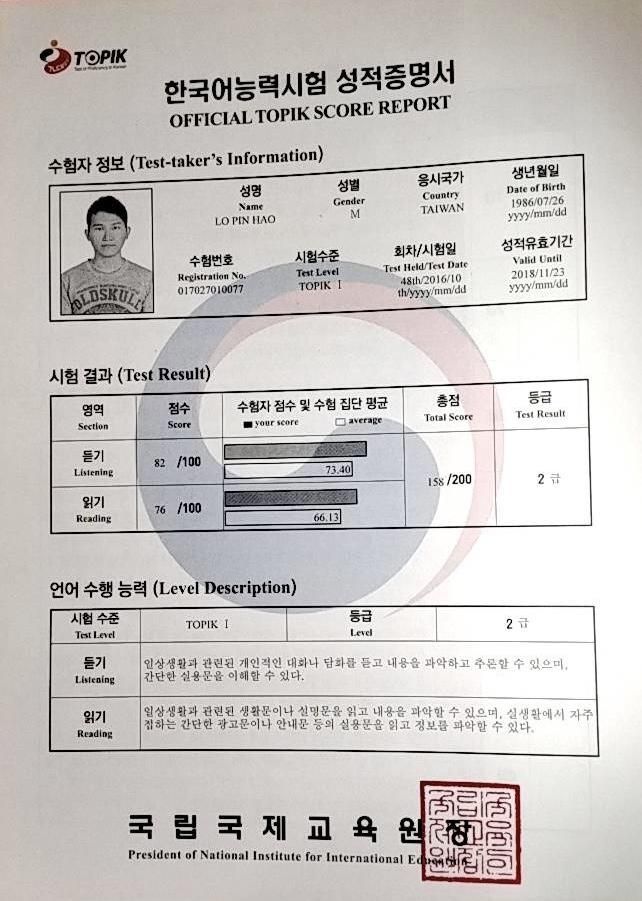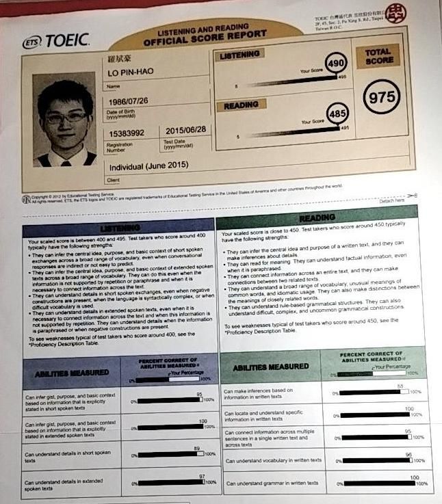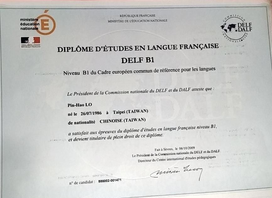Ben的語言檢定證書