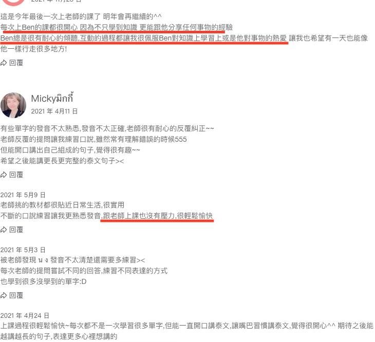 - 線上中、英、泰語教師。