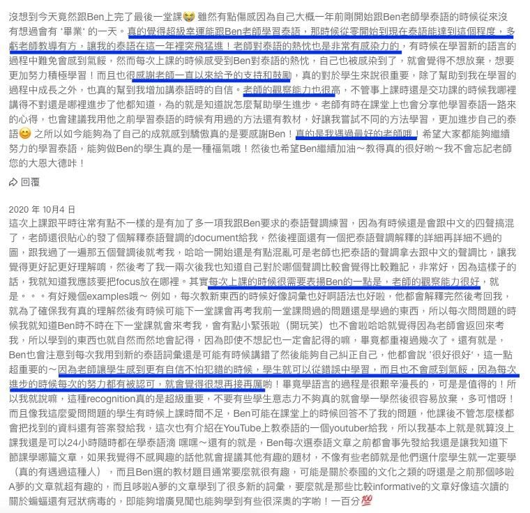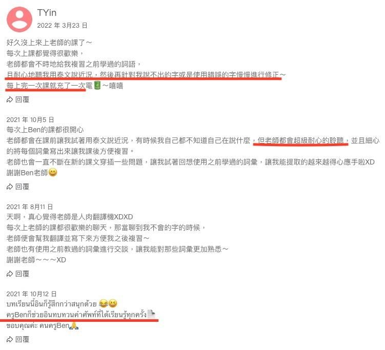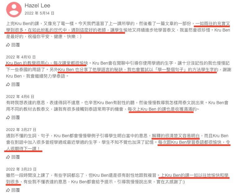 Ben的學員評價: